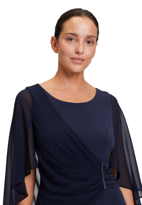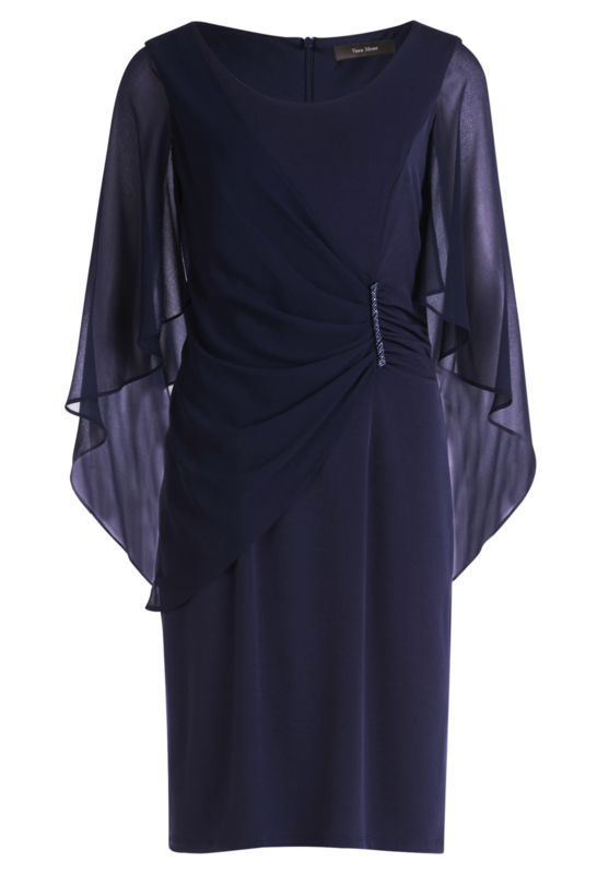 Artikelnummer: 4932/4589/8541Ontdek deze tijdloze Vera Mont damesjurk, een elegante klassieker in marineblauw die moeiteloos chic en draagbaar combineert. Deze jurk is gemaakt van een combinatie van matte én glanzende soepel vallende stof, wat zorgt voor een verfijnde en vrouwelijke look – perfect voor zakelijke events, feestkledij, suitekledij of stijlvolle diners.