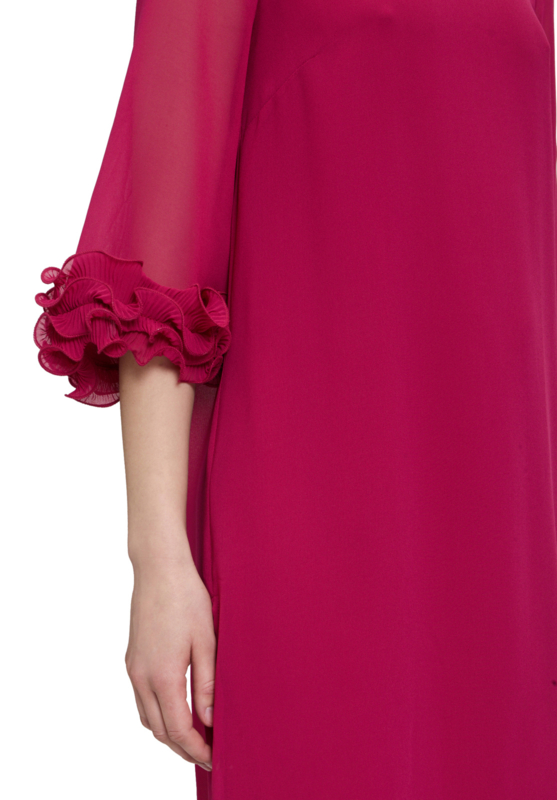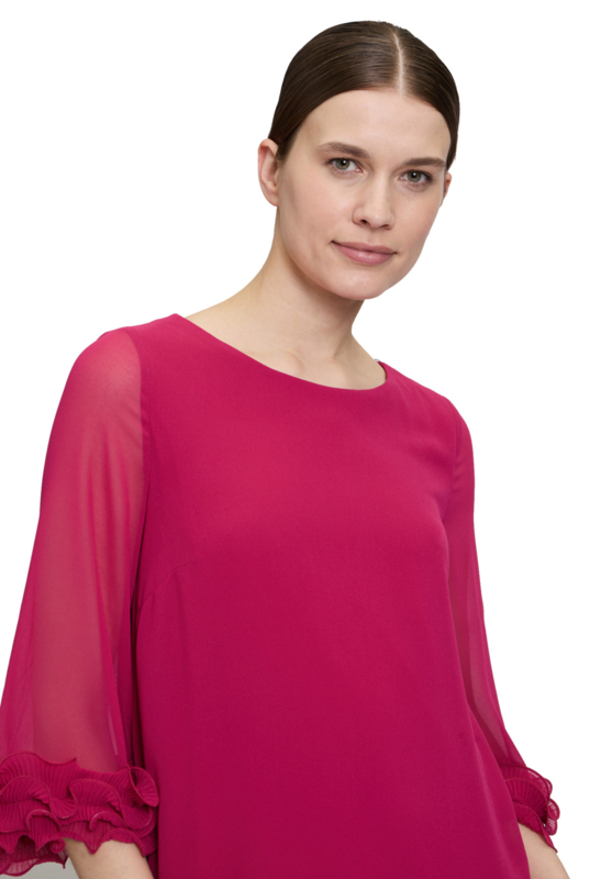 Artikelnummer: 5069/4000/4259Prachtige feestjurk uit hoogwaardig chiffon in een warm framboosrood. De stijlvolle ruches geven deze elegante jurk een bijzonder tintje en maken hem tot de perfecte metgezel voor feestelijke gelegenheden zoals bruiloften, galavonden of andere feestelijke evenementen. Met een totale lengte van 100 cm flatteert de jurk elk figuur en biedt hij een optimale balans tussen comfort en elegantie. Kies voor een look die klasse en stijl combineert – met Vera Mont.